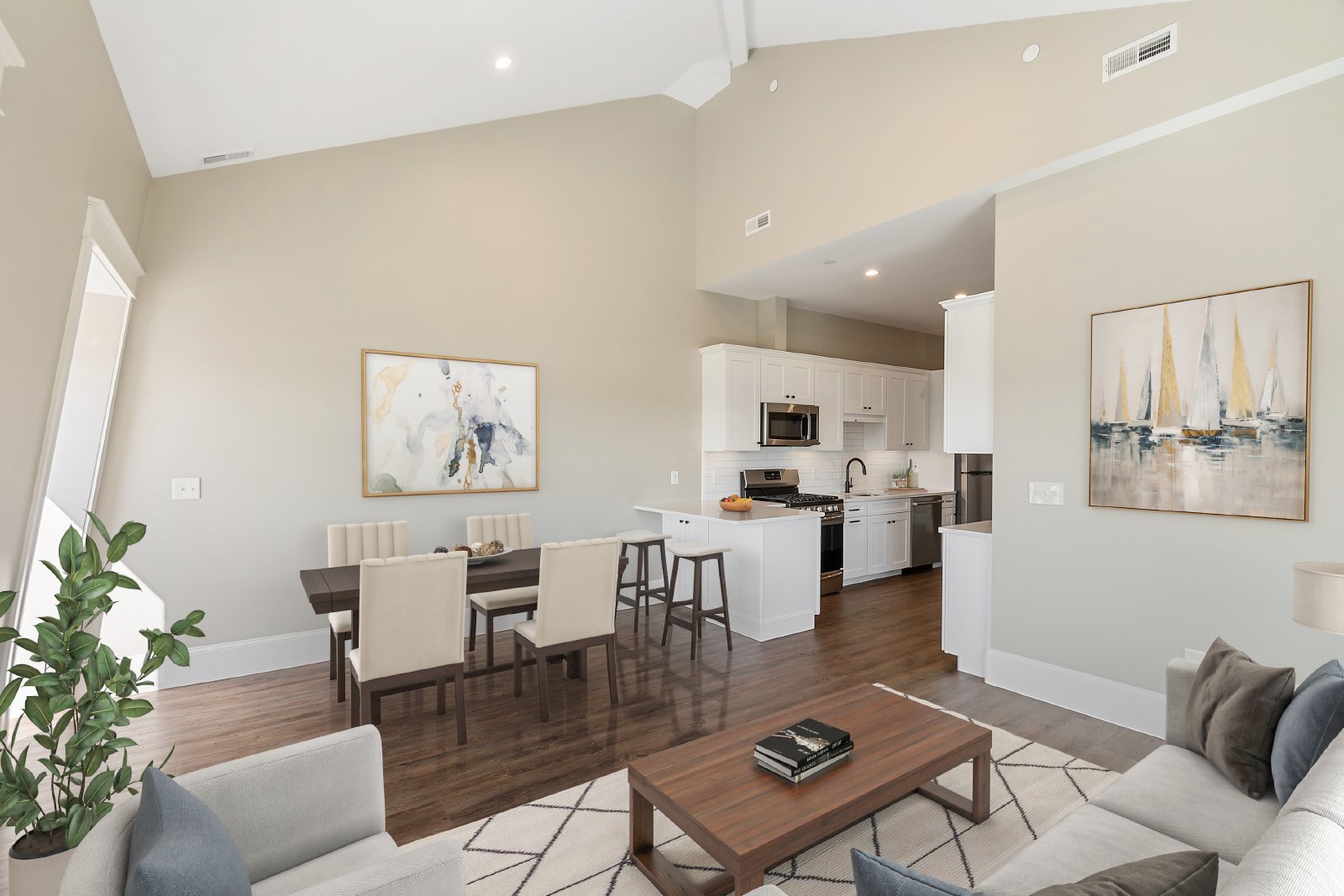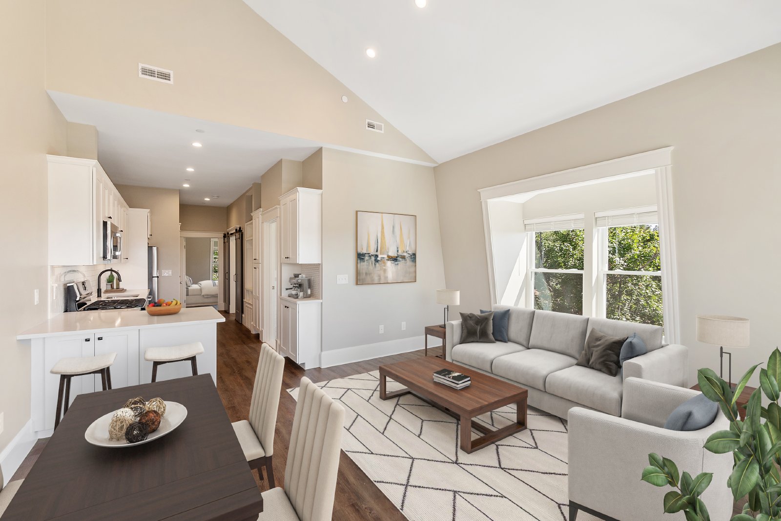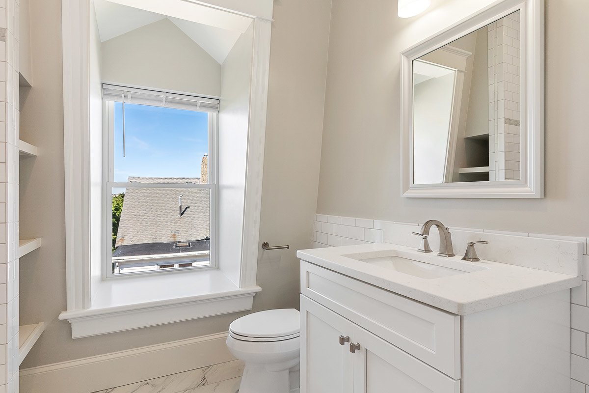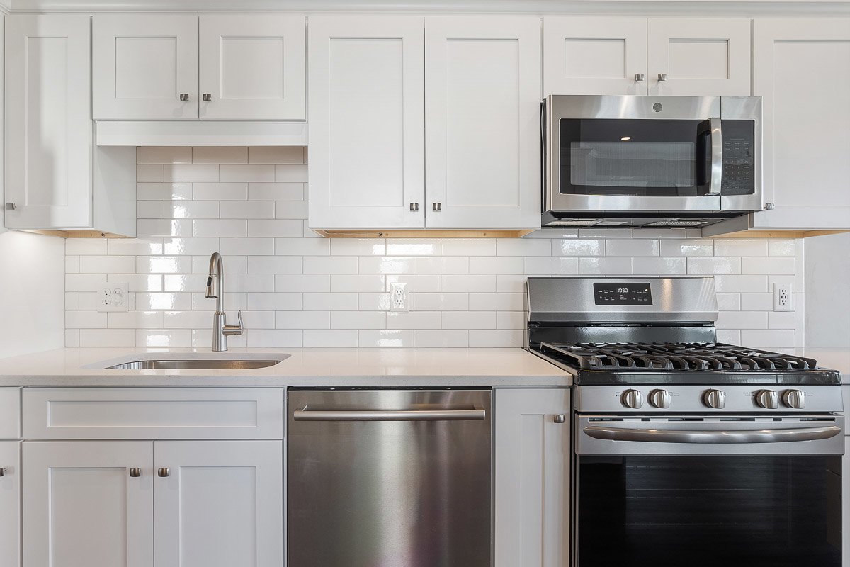 This house is one-of-a-kind and has been described as the nicest renovation in Malden. We completed a full gut-rehab on this historic Victorian Mansard that is located on a quiet street and each unit has a private deck on the back with views of Boston! The kitchen is amazing with white quartz countertops, Bosch dishwasher, microwave, fridge, and high-end gas stove. There is a "coffee bar", built-in pantry for extra storage, and a peninsula with seating for 2. The flooring is a rich dark brown color which contrasts nicely with the grey walls and custom trim. The windows are huge and the unit gets a lot of natural sunlight! The livingroom and bedroom both have cathedral ceilings. The main bathroom has modern tile with white subway around the walls and a custom built-in storage area. There is a second bathroom off the bedroom with a shower. There are barn doors that slide open to a separate office. The unit comes with full-size LG laundry machines. The unit is highly energy efficient partly due to spray foam insulation that was installed during the renovation. Parking is included in the driveway for additional $120/month. The exterior is beautifully landscaped. We are looking for excellent tenants who will treat this unit as if it were their own.