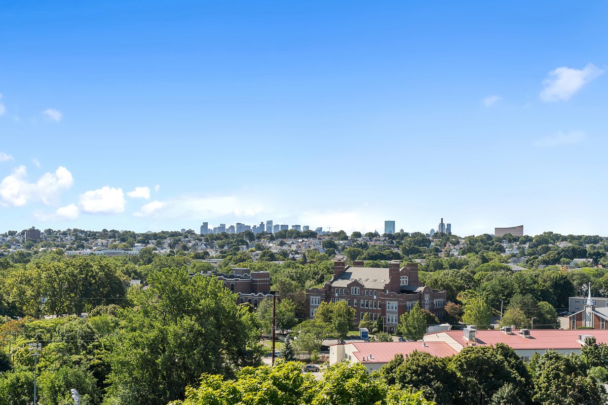 Views of Boston! Luxury 1-BR + Separate Office, Top Floor Unit, Residential Street, 2 Bathrooms, Parking, Storage